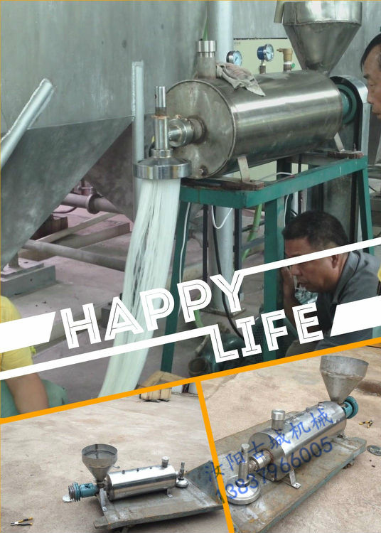 【機械原理】:將淀粉和水比例調漿后送入粉條機進料口內通過螺旋推進裝置將粉推進粉條漏板漏出,采用水蒸汽原理,雙層水箱,給水加熱,蒸煮粉條機內管,使粉條在螺旋推進當中得到成熟。采用獨有的雙螺旋更利于粉條粉絲的熟化,粉條在成形過程中經 100 度沸水煮熟,與手工制粉條的原理相同,沒有破壞粉條粉絲的分子結構,所以與手工工藝相似.粉條機加工粉條比原手工節省人力.物力。大大的減少了淀粉的浪費.一斤淀粉可以加工一斤一兩左右的粉條粉絲(原手工加工為一斤淀粉7-8兩左右的粉絲)。