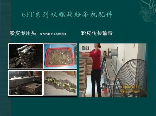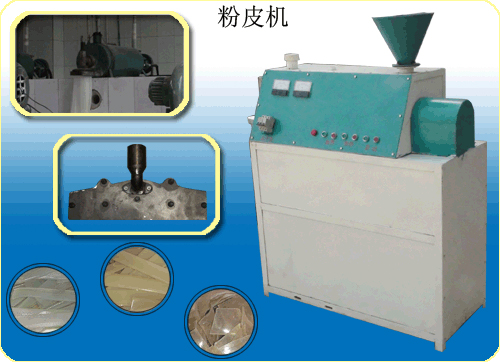 由汝陽縣機械廠生產(chǎn)的蒸汽式粉條機,配用傳輸帶、粉皮頭等配件,可生產(chǎn)不同規(guī)格的粉皮、川粉。分為粉皮頭、川粉頭,粉皮頭生產(chǎn)的成品寬度為38-40公分,厚度可調(diào)節(jié),由傳輸帶配套。生產(chǎn)后可根據(jù)自己的需要切割尺寸。川粉頭外觀和粉皮頭酷似,但漏粉部有固定的尺寸,型號不一,一般生產(chǎn)的為幾種市面常見的川粉模具。現(xiàn)很多大型企業(yè)都在應用,成品理想,操作簡單。